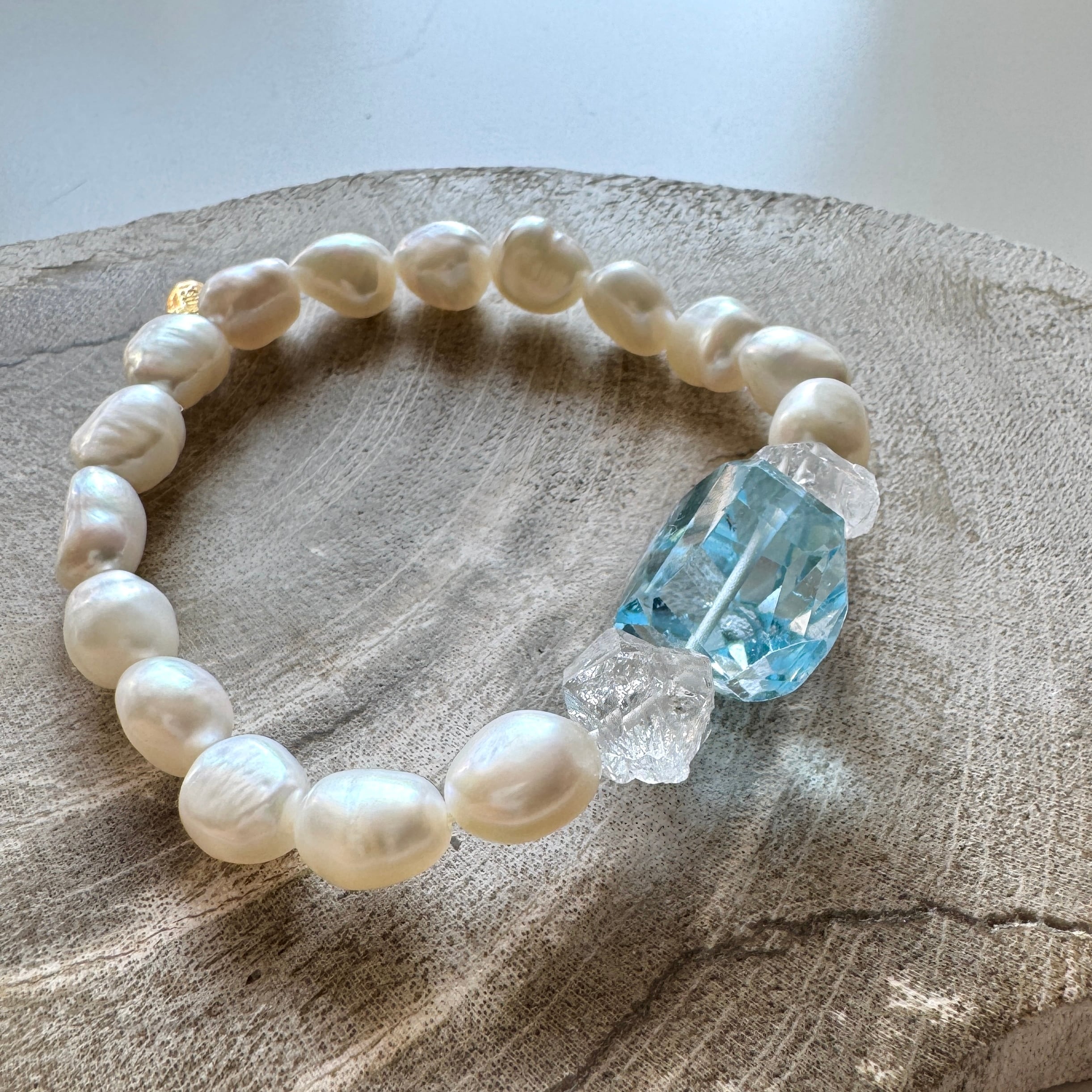 淡水パールに大粒のスカイブルートパーズの